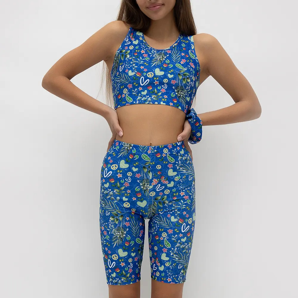 Τοπ με στρογγυλή λαιμόκοψη και αθλητική πλάτη, σε print BLUE. Άνετη εφαρμογή από ανακυκλώσιμο ύφασμα* που απομακρύνει τον ιδρώτα και τέλεια στήριξη κατά την διάρκεια της προπόνησης. Απαλό και άνετο στην κίνηση.