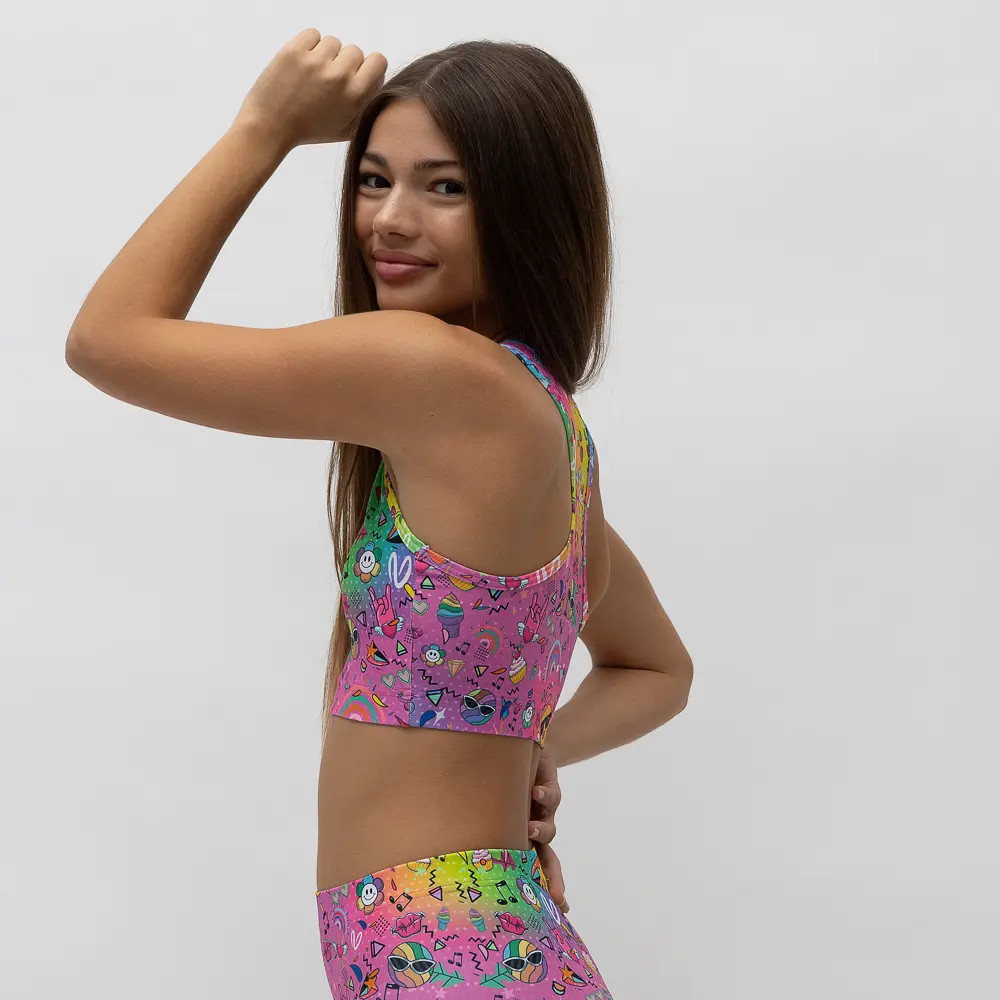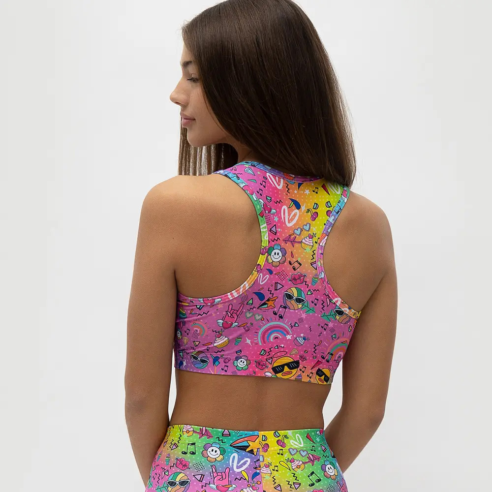 Τοπ με στρογγυλή λαιμόκοψη και αθλητική πλάτη, σε print RAINBOW. Άνετη εφαρμογή από ανακυκλώσιμο ύφασμα* που απομακρύνει τον ιδρώτα και τέλεια στήριξη κατά την διάρκεια της προπόνησης. Απαλό και άνετο στην κίνηση.