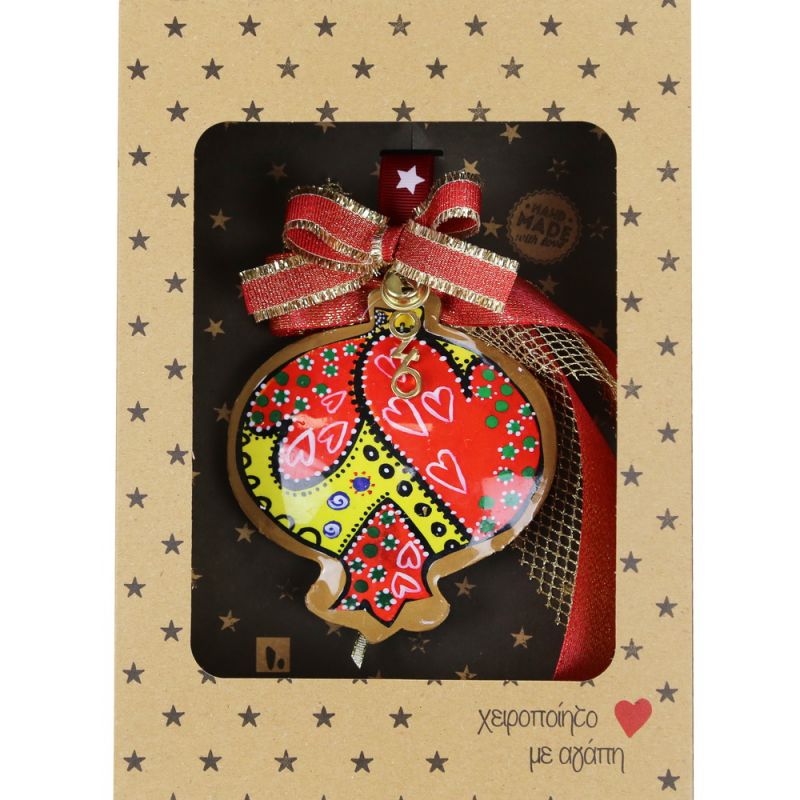 - Κόκκινος–χρυσός φιόγκος & μεταλλικό κουδουνάκι