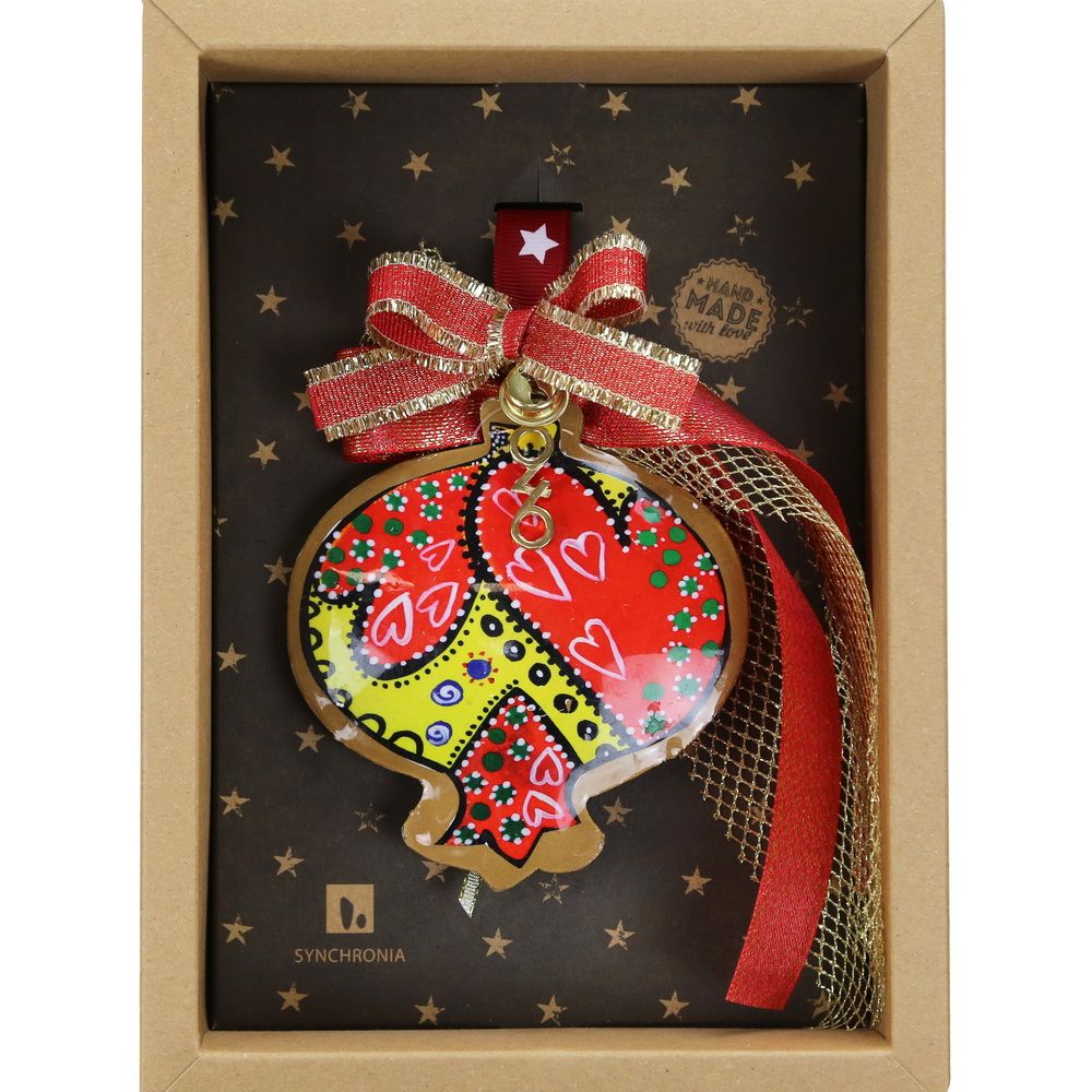 • Κόκκινος–χρυσός φιόγκος & μεταλλικό κουδουνάκι