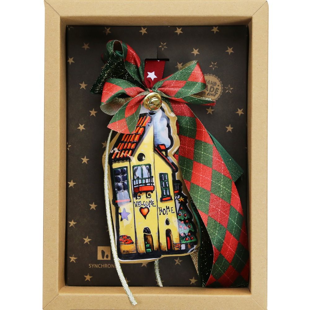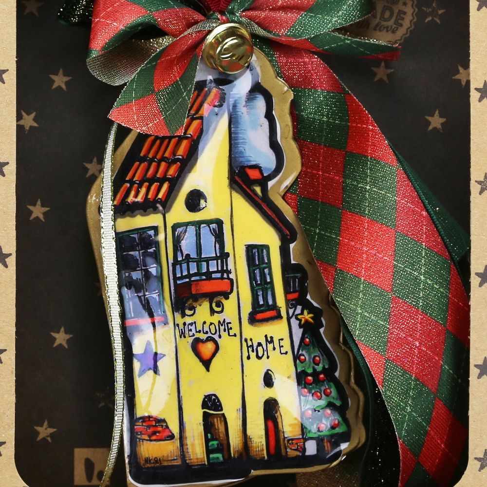 Χειροποίητο γούρι με μεταλλικό σπιτάκι – χαρούμενο "Welcome Home" διπλής όψης
