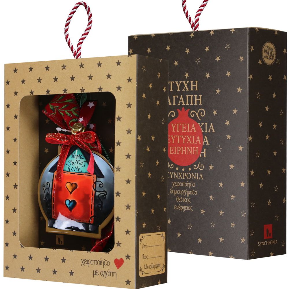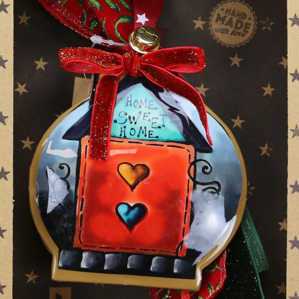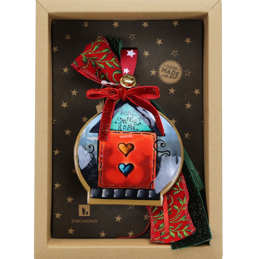 Χειροποίητο γούρι με μεταλλικό σπιτάκι "Home Sweet Home" – διπλής όψης με κόκκινο φιόγκο