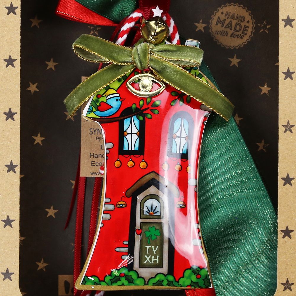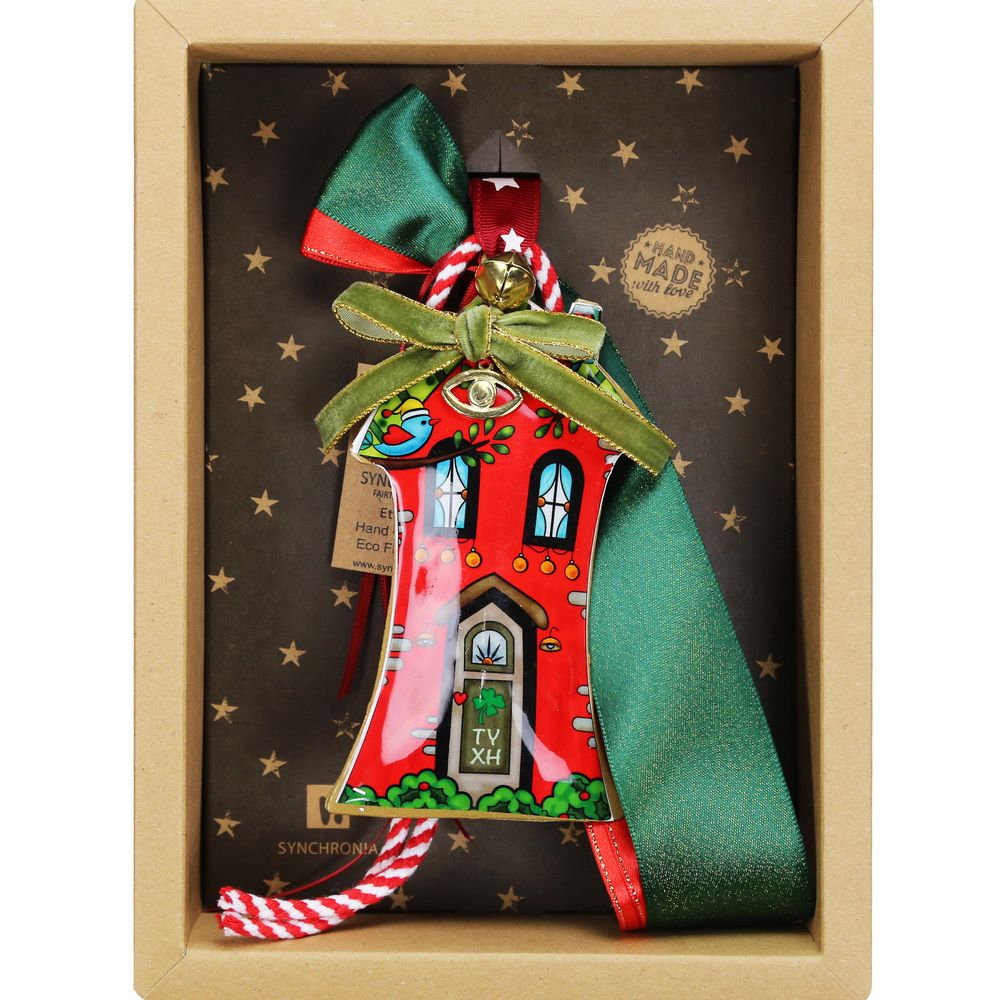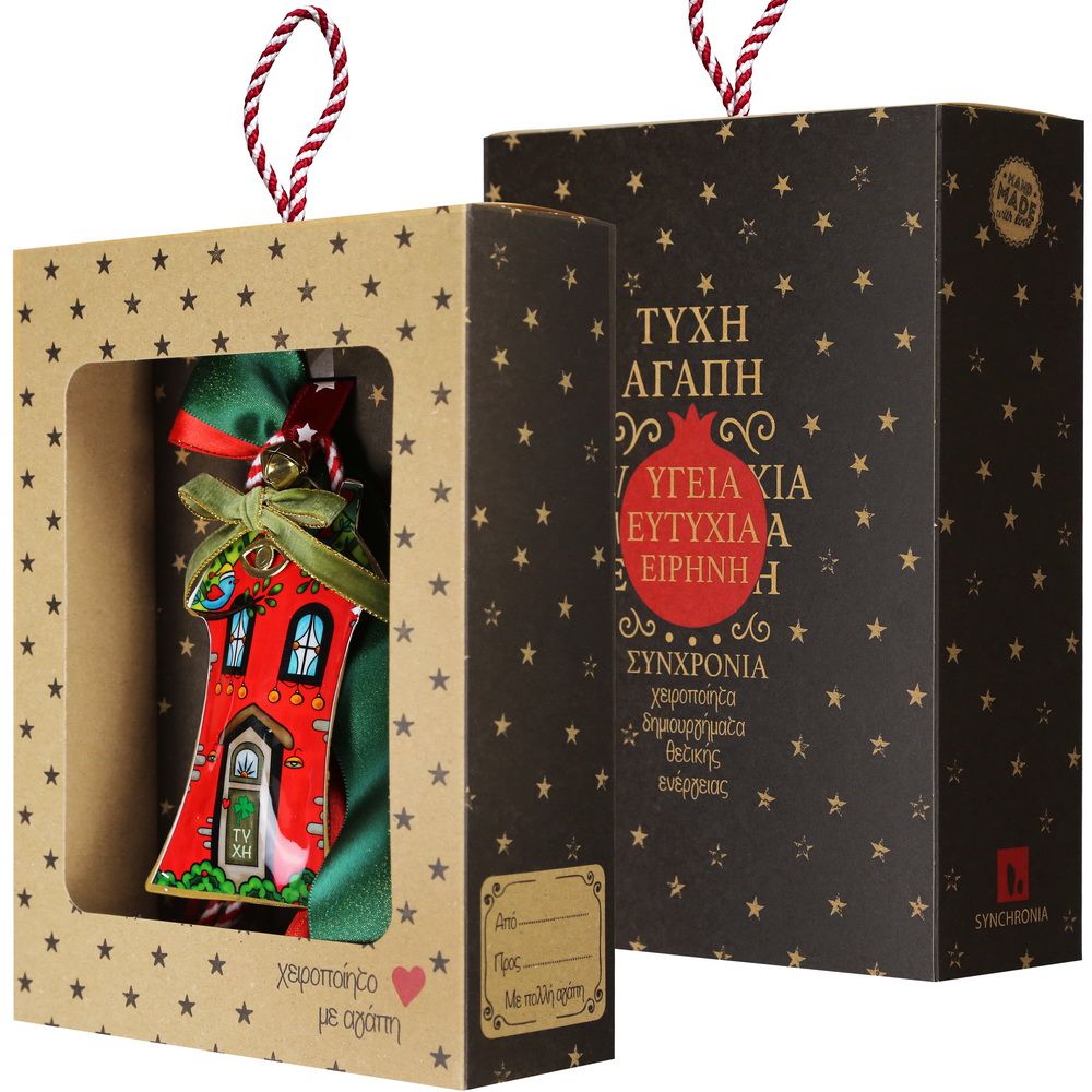 Χειροποίητο γούρι με μεταλλικό σπιτάκι διπλής όψης, ζωγραφισμένο με λεπτομέρεια, έχει χρυσό τελείωμα και υπέροχα χρώματα.