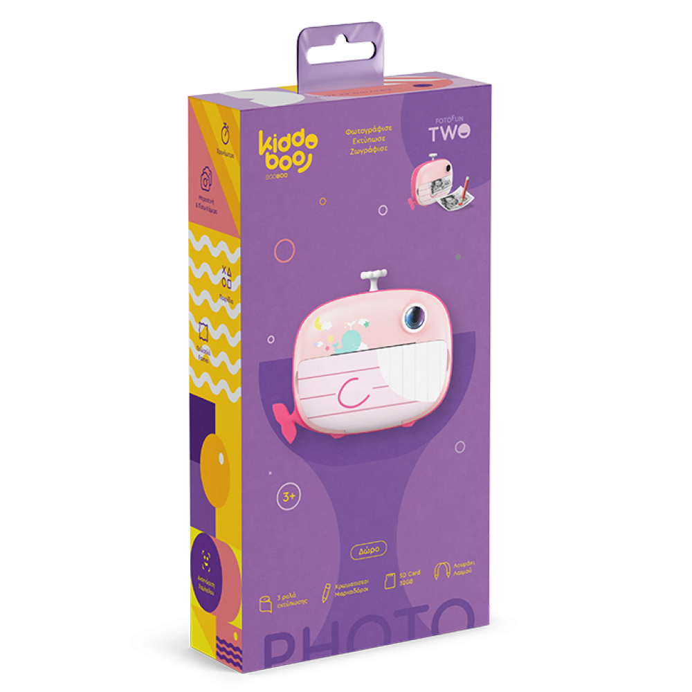 Η Kiddoboo Fotοfun 2 δεν είναι απλώς μια συνηθισμένη παιδική φωτογραφική μηχανή! Χάρη στον ενσωματωμένο θερμικό εκτυπωτή της, ο εκκολαπτόμενος φωτογράφος μπορεί να τραβήξει φωτογραφίες και να τις παρακολουθήσει να εκτυπώνονται με μαγικό τρόπο, αμέσως!