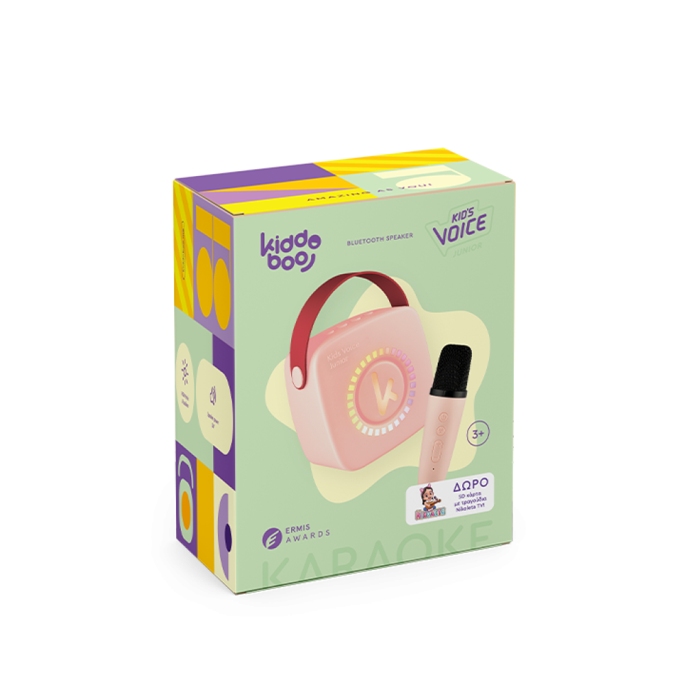 Μια μουσική εμπειρία γεμάτη διασκέδαση για κάθε παιδί, με το KidsVoice, το ηχείο που συνδυάζει μουσική, τραγούδι και karaoke σε μία συσκευή! Σχεδιασμένο με γνώμονα τα παιδιά, διαθέτει ασύρματο μικρόφωνο karaoke, ιδανικό για να τραγουδούν τα αγαπημένα τους τραγούδια μόνα ή με φίλους.