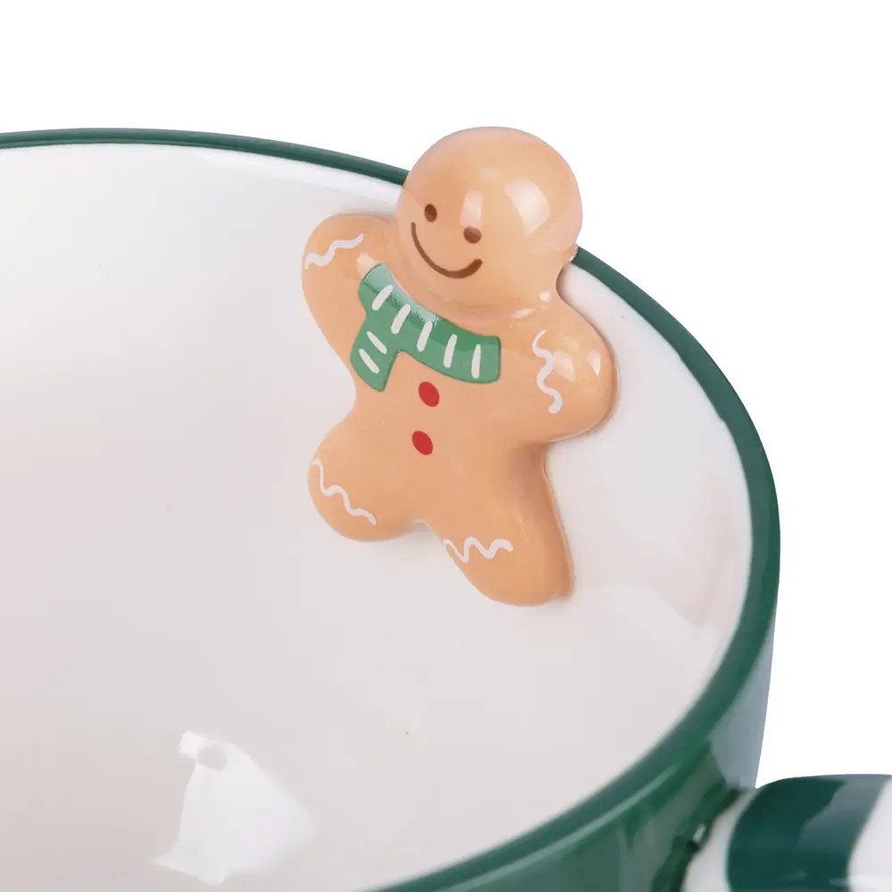 Κούπα, Χριστούγεννα Σε κεραμική με μελόψωμο Διακόσμηση με χιονονιφάδα και επιγραφή "Καλά Χριστούγεννα" Καρό χερούλι Χωρητικότητα: 400 ml Διαστάσεις: μήκος 16,3 x πλάτος 12 x ύψος 10,9 εκ. Πλύσιμο στο χέρι Δεν είναι κατάλληλο για φούρνο μικροκυμάτων Χρώμα: πράσινο με κόκκινη βάση