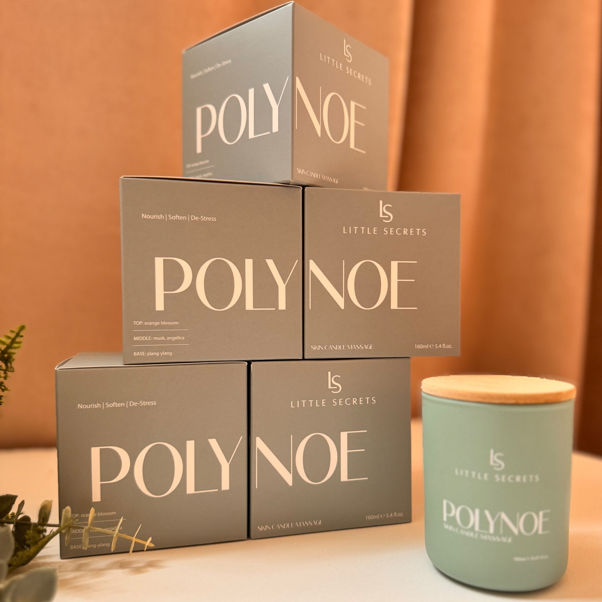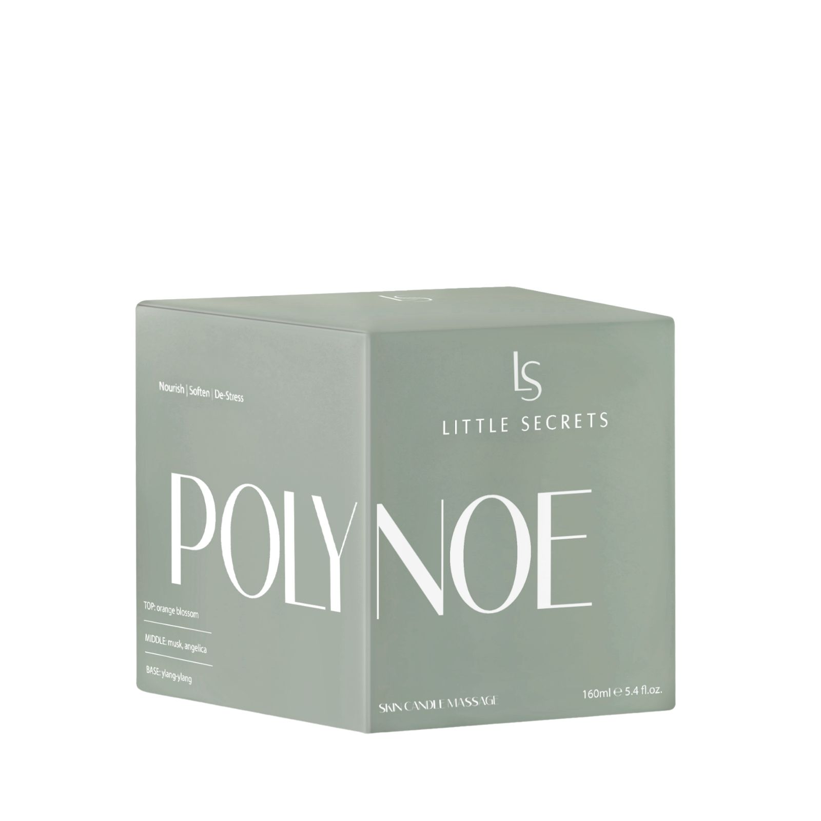 Το Polynoe Candle Massage περιέχει ένα μαγευτικό συνδυασμό αρωμάτων από άνθη πορτοκαλιάς, μόσχο, angelica και ylang-ylang.